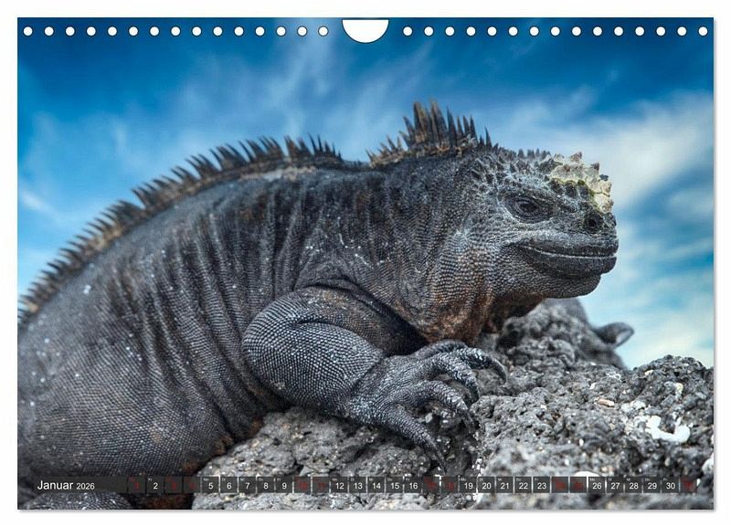 Januar: Meeresleguan (Amblyrhynchus cristatus), Insel Isabela