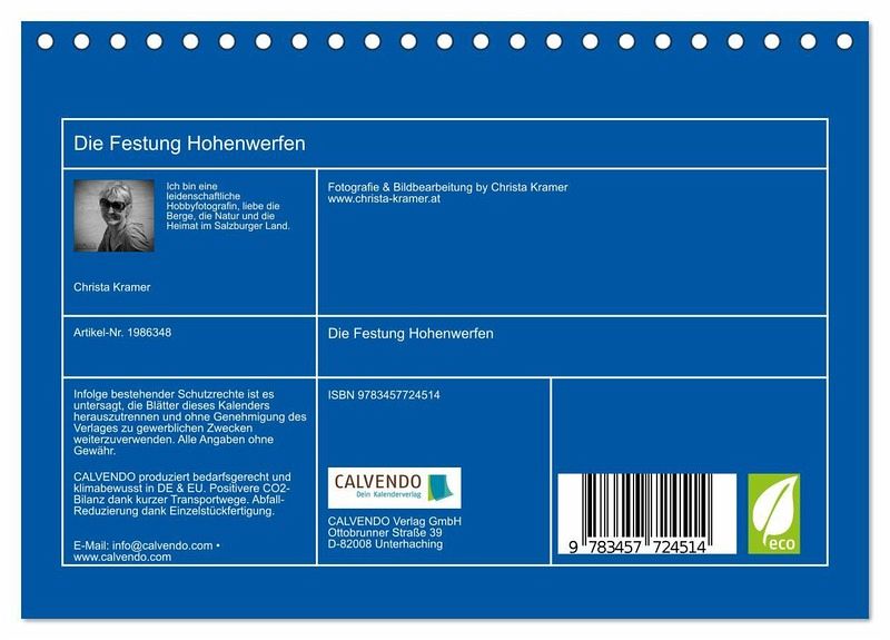 QUALITÄT - Hochwertiger Fotokalender mit 12 wunderschönen Motiven auf lichtbeständigem Bilderdruckpapier, robuste Spiralbindung.NACHHALTIG - deutliche Abfallreduzierung durch bedarfsgerechte Einzelstückfertigung, umweltfreundliches FSC-zertifiziertes Papier, Produktion in Deutschland, klimabewusste Logistik.PERFEKTES GESCHENK - Kalender für Freunde und Familie, für Kinder und Erwachsene, jung und alt, zu Weihnachten, Geburtstag oder zwischendurch.VIELFALT - Bildkalender in verschiedenen Formaten, z.B. DIN A5, DIN A4, DIN A3 sowie DIN A2. Ob Naturmotiv, Gemälde oder Fotos, ideal für ein persönliches Wohlfühlambiente.Impressionen von der mittelalterlichen Höhenburg in Werfen von Autor(in): Christa Kramer