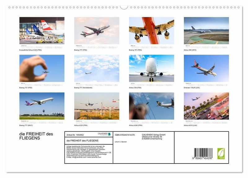 PREMIUM-LINIE - Brillanter Fotokalender mit 12 wunderschönen Motiven, Kunstdruck in Hochglanz in Museumsqualität.QUALITÄT - edle Materialien, stabile Rückwand mit 2 innovativen Einstecktaschen für eine optimale Präsentation an der Wand.NACHHALTIG - deutliche Abfallreduzierung durch bedarfsgerechte Einzelstückfertigung, umweltfreundliches FSC-zertifiziertes Papier, Produktion in Deutschland, klimabewusste Logistik.PERFEKTES GESCHENK - Kalender für Freunde und Familie, für Kinder und Erwachsene, jung und alt, zu Weihnachten, Geburtstag oder zwischendurch.Träume das ganze Jahr von Reisen in die Ferne mit außergewöhnlichen Flugzeug-Motiven. von Autor(in): Ulrich C. Beinert