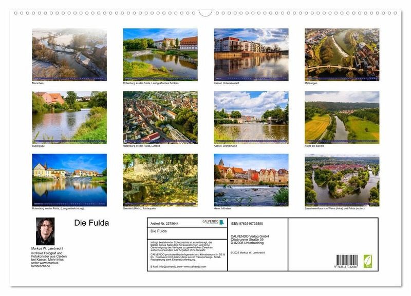QUALITÄT - Hochwertiger Fotokalender mit 12 wunderschönen Motiven auf lichtbeständigem Bilderdruckpapier, robuste Spiralbindung mit Aufhängebügel.NACHHALTIG - deutliche Abfallreduzierung durch bedarfsgerechte Einzelstückfertigung, umweltfreundliches FSC-zertifiziertes Papier, Produktion in Deutschland, klimabewusste Logistik.PERFEKTES GESCHENK - Kalender für Freunde und Familie, für Kinder und Erwachsene, jung und alt, zu Weihnachten, Geburtstag oder zwischendurch.VIELFALT - Bildkalender in verschiedenen Formaten, z.B. DIN A5, DIN A4, DIN A3 sowie DIN A2. Ob Naturmotiv, Gemälde oder Fotos, ideal für ein persönliches Wohlfühlambiente.Eine Reise von der Quelle bis zur Weser von Autor(in): Markus W. Lambrecht