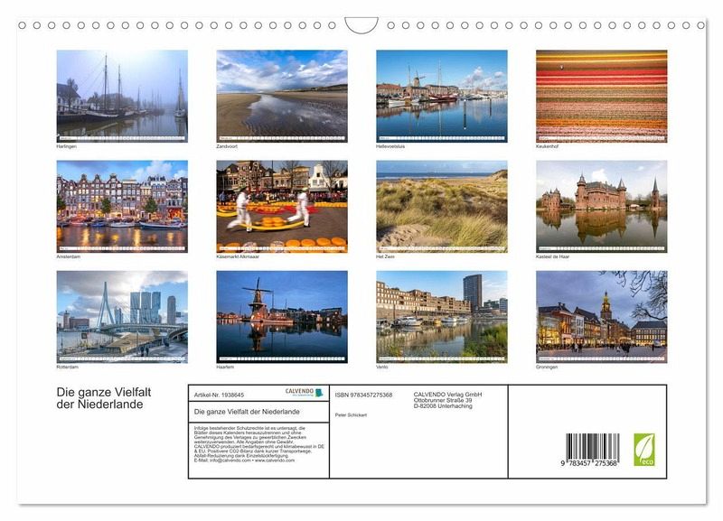 Von den farbenfrohen Tulpenfeldern über die idyllischen Grachten Amsterdams bis hin zu den windgepeitschten Stränden der Nordsee - dieser Kalender fängt die Vielfalt und den Zauber der Niederlande in beeindruckenden Bildern ein.
