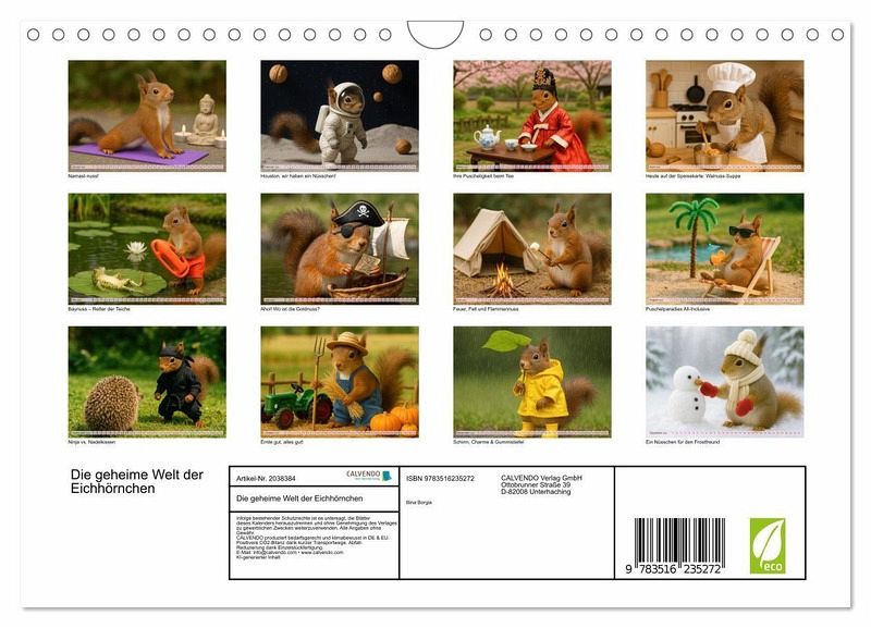 Erlebe 12 einzigartigen Eichhörnchen-Motive - als Astronaut, Pirat, Koch oder Yoga-Meister. Diese kleinen Puschelstars bringen Monat für Monat ein Lächeln aufs Gesicht. Perfekt für Tierliebhaber, Familien und alle, die Humor und Herz im Alltag schätzen. Ein Kalender zum Verlieben, Verschenken und Schmunzeln!