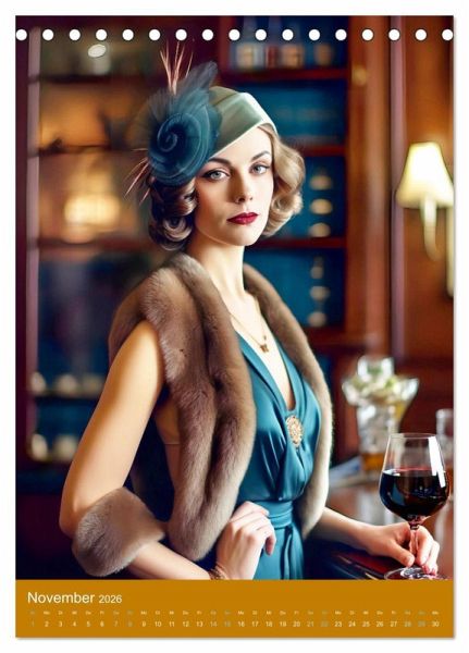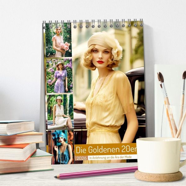 Tauchen Sie ein in das glamouröse Flair der "Goldenen 20er" mit unserem Kalender. Inspiriert von der Ära der Mode präsentieren wir KI-generierte Bild, die die Eleganz und den Stil dieser Zeit aufleben lassen. Jeder Monat zeigt ein atemberaubendes Kleid, das von den 1920er Jahren beeinflusst ist. Ein absolutes Must-Have für alle Modebegeisterten und ein perfektes Geschenk für Liebhaber nostalgischer Vintage-Looks.
