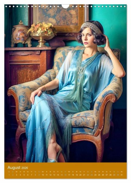 Tauchen Sie ein in das glamouröse Flair der "Goldenen 20er" mit unserem Kalender. Inspiriert von der Ära der Mode präsentieren wir KI-generierte Bild, die die Eleganz und den Stil dieser Zeit aufleben lassen. Jeder Monat zeigt ein atemberaubendes Kleid, das von den 1920er Jahren beeinflusst ist. Ein absolutes Must-Have für alle Modebegeisterten und ein perfektes Geschenk für Liebhaber nostalgischer Vintage-Looks.