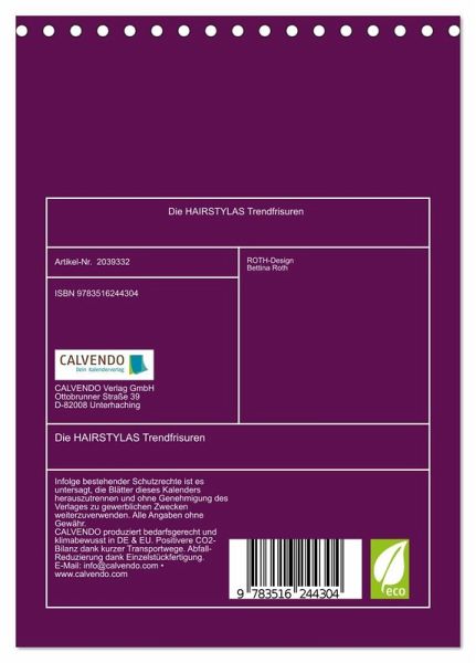 QUALITÄT - Hochwertiger Fotokalender mit 12 wunderschönen Motiven auf lichtbeständigem Bilderdruckpapier, robuste Spiralbindung.NACHHALTIG - deutliche Abfallreduzierung durch bedarfsgerechte Einzelstückfertigung, umweltfreundliches FSC-zertifiziertes Papier, Produktion in Deutschland, klimabewusste Logistik.PERFEKTES GESCHENK - Kalender für Freunde und Familie, für Kinder und Erwachsene, jung und alt, zu Weihnachten, Geburtstag oder zwischendurch.VIELFALT - Bildkalender in verschiedenen Formaten, z.B. DIN A5, DIN A4, DIN A3 sowie DIN A2. Ob Naturmotiv, Gemälde oder Fotos, ideal für ein persönliches Wohlfühlambiente.Farbenfrohe Illustrationen von den flauschigen HAIRSTYLAS mit ihrer vollen Haarpracht von Autor(in): ROTH-Design