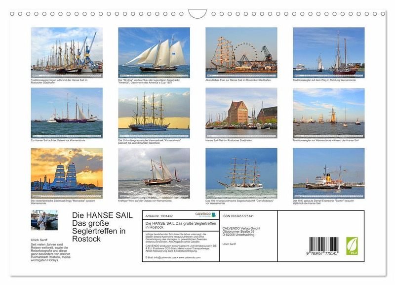 QUALITÄT - Hochwertiger Fotokalender mit 12 wunderschönen Motiven auf lichtbeständigem Bilderdruckpapier, robuste Spiralbindung mit Aufhängebügel.NACHHALTIG - deutliche Abfallreduzierung durch bedarfsgerechte Einzelstückfertigung, umweltfreundliches FSC-zertifiziertes Papier, Produktion in Deutschland, klimabewusste Logistik.PERFEKTES GESCHENK - Kalender für Freunde und Familie, für Kinder und Erwachsene, jung und alt, zu Weihnachten, Geburtstag oder zwischendurch.VIELFALT - Bildkalender in verschiedenen Formaten, z.B. DIN A5, DIN A4, DIN A3 sowie DIN A2. Ob Naturmotiv, Gemälde oder Fotos, ideal für ein persönliches Wohlfühlambiente.Bilder vom größten maritimen Volksfest in Mecklenburg-Vorpommern von Autor(in): Ulrich Senff