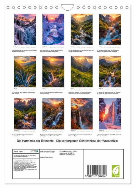 QUALITÄT - Hochwertiger Fotokalender mit 12 wunderschönen Motiven auf lichtbeständigem Bilderdruckpapier, robuste Spiralbindung mit Aufhängebügel.NACHHALTIG - deutliche Abfallreduzierung durch bedarfsgerechte Einzelstückfertigung, umweltfreundliches FSC-zertifiziertes Papier, Produktion in Deutschland, klimabewusste Logistik.PERFEKTES GESCHENK - Kalender für Freunde und Familie, für Kinder und Erwachsene, jung und alt, zu Weihnachten, Geburtstag oder zwischendurch.VIELFALT - Bildkalender in verschiedenen Formaten, z.B. DIN A5, DIN A4, DIN A3 sowie DIN A2. Ob Naturmotiv, Gemälde oder Fotos, ideal für ein persönliches Wohlfühlambiente.Entdecken Sie die Harmonie der Elemente an den verborgenen Wasserfällen, wo sich Wasser, Erde, Luft und Licht in einer perfekten Symbiose vereinen. von Autor(in): Steffen Gierok ; Magik Artist Design