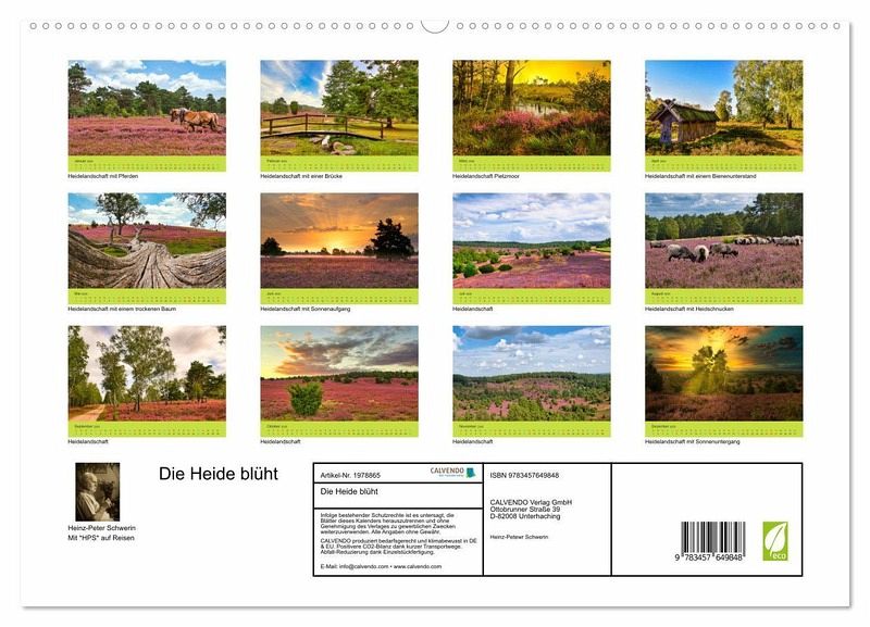 PREMIUM-LINIE - Brillanter Fotokalender mit 12 wunderschönen Motiven, Kunstdruck in Hochglanz in Museumsqualität.QUALITÄT - edle Materialien, stabile Rückwand mit 2 innovativen Einstecktaschen für eine optimale Präsentation an der Wand.NACHHALTIG - deutliche Abfallreduzierung durch bedarfsgerechte Einzelstückfertigung, umweltfreundliches FSC-zertifiziertes Papier, Produktion in Deutschland, klimabewusste Logistik.PERFEKTES GESCHENK - Kalender für Freunde und Familie, für Kinder und Erwachsene, jung und alt, zu Weihnachten, Geburtstag oder zwischendurch.Die Lüneburger Heide ein Naturparadies in Deutschland. von Autor(in): Mit HPS auf Reisen