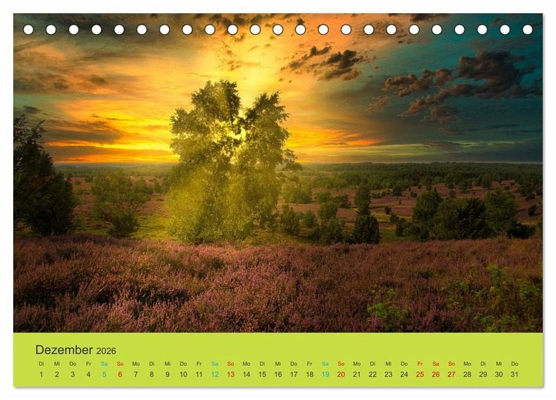 Dezember: Heidelandschaft mit Sonnenuntergang