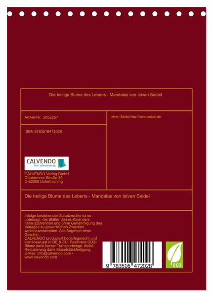 QUALITÄT - Hochwertiger Fotokalender mit 12 wunderschönen Motiven auf lichtbeständigem Bilderdruckpapier, robuste Spiralbindung.NACHHALTIG - deutliche Abfallreduzierung durch bedarfsgerechte Einzelstückfertigung, umweltfreundliches FSC-zertifiziertes Papier, Produktion in Deutschland, klimabewusste Logistik.PERFEKTES GESCHENK - Kalender für Freunde und Familie, für Kinder und Erwachsene, jung und alt, zu Weihnachten, Geburtstag oder zwischendurch.VIELFALT - Bildkalender in verschiedenen Formaten, z.B. DIN A5, DIN A4, DIN A3 sowie DIN A2. Ob Naturmotiv, Gemälde oder Fotos, ideal für ein persönliches Wohlfühlambiente.13 Mandalas als Tafelmalerei auf Holz als Variation der Blume des Lebens von István Seidel von Autor(in): Istvan Seidel