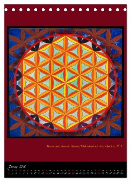Januar: Blume des Lebens in blau/rot, Tafelmalerei auf Holz 2013, 43x43cm