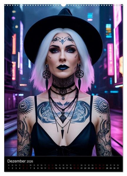 Tauche ein in eine faszinierende Welt, in der Magie auf moderne Technologie trifft! Der Wandkalender "Cyberpunk City Hexen" präsentiert jeden Monat ein einzigartiges Artwork, das mystischen Hexen in Cyberpunk City zeigt. Erlebe Neonlichter, schimmernde Wolkenkratzer und zauberhafte Charaktere, die die Grenzen von Realität und Fantasie verwischen. Jedes Monat ziert ein durch Ki entstandenes Kunstwerk, das die Abenteuer einer Hexe in einer pulsierenden Cyberpunk-Stadt einfängt.