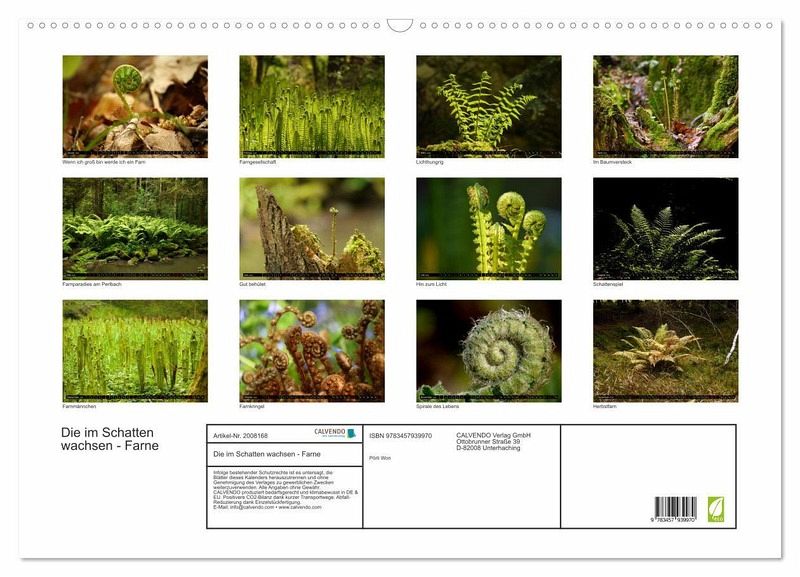 QUALITÄT - Hochwertiger Fotokalender mit 12 wunderschönen Motiven auf lichtbeständigem Bilderdruckpapier, robuste Spiralbindung mit Aufhängebügel.NACHHALTIG - deutliche Abfallreduzierung durch bedarfsgerechte Einzelstückfertigung, umweltfreundliches FSC-zertifiziertes Papier, Produktion in Deutschland, klimabewusste Logistik.PERFEKTES GESCHENK - Kalender für Freunde und Familie, für Kinder und Erwachsene, jung und alt, zu Weihnachten, Geburtstag oder zwischendurch.VIELFALT - Bildkalender in verschiedenen Formaten, z.B. DIN A5, DIN A4, DIN A3 sowie DIN A2. Ob Naturmotiv, Gemälde oder Fotos, ideal für ein persönliches Wohlfühlambiente.Geheimnisvolle Farnwelt von Autor(in): Pörli Won