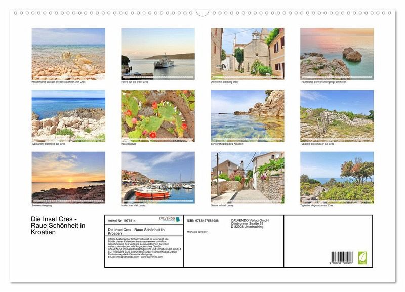 QUALITÄT - Hochwertiger Fotokalender mit 12 wunderschönen Motiven auf lichtbeständigem Bilderdruckpapier, robuste Spiralbindung mit Aufhängebügel.NACHHALTIG - deutliche Abfallreduzierung durch bedarfsgerechte Einzelstückfertigung, umweltfreundliches FSC-zertifiziertes Papier, Produktion in Deutschland, klimabewusste Logistik.PERFEKTES GESCHENK - Kalender für Freunde und Familie, für Kinder und Erwachsene, jung und alt, zu Weihnachten, Geburtstag oder zwischendurch.VIELFALT - Bildkalender inverschiedenen Formaten, z.B. DIN A5, DIN A4, DIN A3 sowie DIN A2. Ob Naturmotiv, Gemälde oder Fotos, ideal für ein persönliches Wohlfühlambiente.Impressionen von der Insel Cres in Kroatien von Autor(in): Michaela Spreider