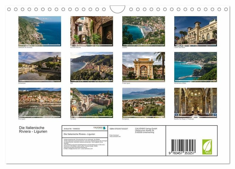 Entdecken Sie die zauberhafte Schönheit Liguriens in diesem Kalender vom renommierten Reisefotografen Peter Schickert, der Ihnen Monat für Monat die wunderbaren Facetten dieser malerischen Region Italiens näher bringt. Von den sonnenverwöhnten Stränden der Cinque Terre über die historischen Gassen von Noli, Dolceacqua oder Finale Ligure bis zu den idyllischen Dörfern im Hinterland - dieser Kalender fängt die Vielfalt und den Charme Liguriens in beeindruckenden Bildern ein.