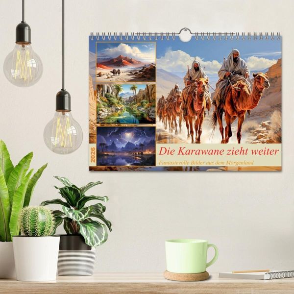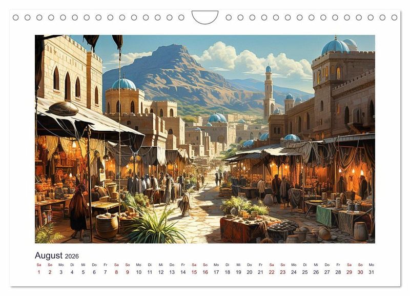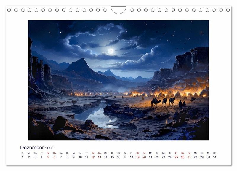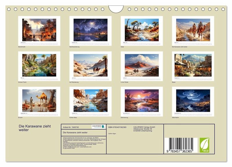 Der neue KI-Kalender zeigt fantasievolle Zeichnungen aus der Welt des Morgenlandes mit seinen exotischen Landschaften, seinen majestätischen Kamelen, die in Karawanen durch das Land ziehen und seiner geheimnisvollen Atmosphäre. Lassen Sie sich von der Schönheit und dem Zauber dieser Kunstwerke verzaubern und inspirieren. Dieser Kalender ist nicht nur ein praktischer Begleiter für das ganze Jahr, sondern auch ein echter Hingucker für Ihr Zuhause oder Büro.