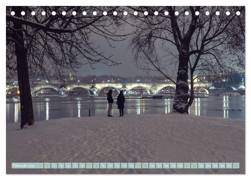 Januar: Karlsbrücke mit Kleinseite von der St. Nikolaus Kirche