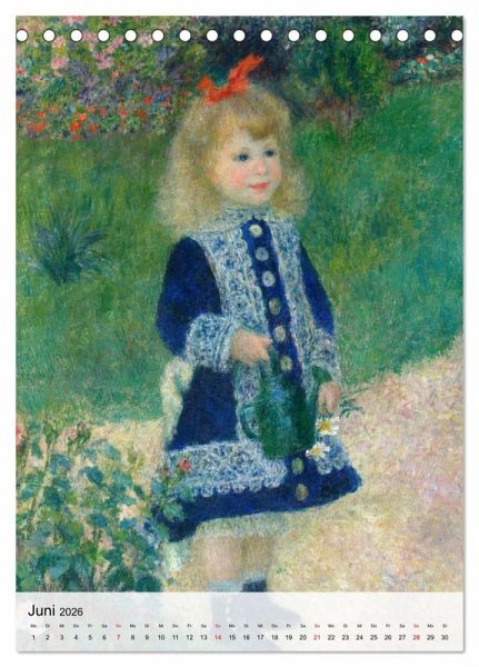 QUALITÄT - Hochwertiger Fotokalender mit 12 wunderschönen Motiven auf lichtbeständigem Bilderdruckpapier, robuste Spiralbindung.NACHHALTIG - deutliche Abfallreduzierung durch bedarfsgerechte Einzelstückfertigung, umweltfreundliches FSC-zertifiziertes Papier, Produktion in Deutschland, klimabewusste Logistik.PERFEKTES GESCHENK - Kalender für Freunde und Familie, für Kinder und Erwachsene, jung und alt, zu Weihnachten, Geburtstag oder zwischendurch.VIELFALT - Bildkalender in verschiedenen Formaten, z.B. DIN A5, DIN A4, DIN A3 sowie DIN A2. Ob Naturmotiv, Gemälde oder Fotos, ideal für ein persönliches Wohlfühlambiente.Zarte Porträts junger Mädchen aus dem impressionistischen Werk Pierre-Auguste Renoirs - poetisch, zeitlos und voller Licht. von Autor(in): Barbara Djassemi