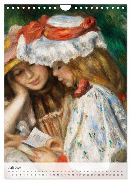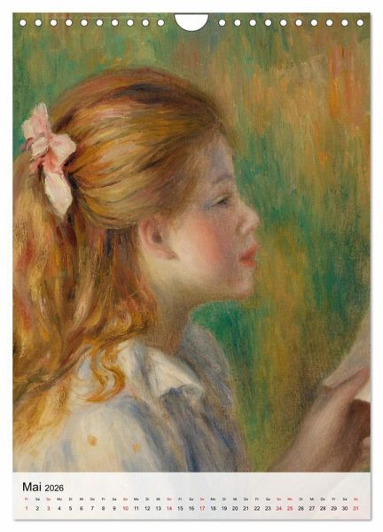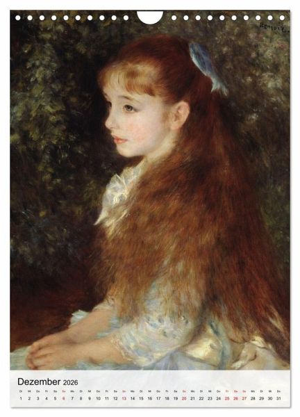 QUALITÄT - Hochwertiger Fotokalender mit 12 wunderschönen Motiven auf lichtbeständigem Bilderdruckpapier, robuste Spiralbindung mit Aufhängebügel.NACHHALTIG - deutliche Abfallreduzierung durch bedarfsgerechte Einzelstückfertigung, umweltfreundliches FSC-zertifiziertes Papier, Produktion in Deutschland, klimabewusste Logistik.PERFEKTES GESCHENK - Kalender für Freunde und Familie, für Kinder und Erwachsene, jung und alt, zu Weihnachten, Geburtstag oder zwischendurch.VIELFALT - Bildkalender in verschiedenen Formaten, z.B. DIN A5, DIN A4, DIN A3 sowie DIN A2. Ob Naturmotiv, Gemälde oder Fotos, ideal für ein persönliches Wohlfühlambiente.Zarte Porträts junger Mädchen aus dem impressionistischen Werk Pierre-Auguste Renoirs - poetisch, zeitlos und voller Licht. von Autor(in): Barbara Djassemi