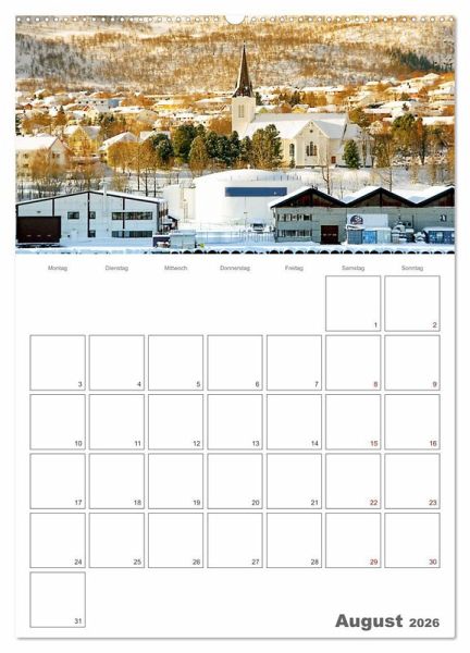 August: Polarkreisstädtchen mit weißer Kirche