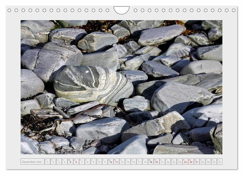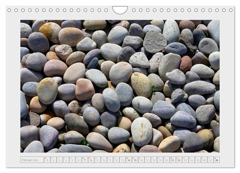 Wir sind umgeben von Steinen, sie faszinieren uns, sie regen unsere Fantasie an. Dieser Kalender vereint Zufallsfunde von Stränden in Dänemark und Schottland, für die vergängliche Komposition war die Natur zuständig, und einige von Menschenhand geschaffene Strukturen aus Stein.