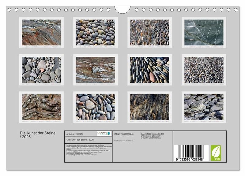 QUALITÄT - Hochwertiger Fotokalender mit 12 wunderschönen Motiven auf lichtbeständigem Bilderdruckpapier, robuste Spiralbindung mit Aufhängebügel.NACHHALTIG - deutliche Abfallreduzierung durch bedarfsgerechte Einzelstückfertigung, umweltfreundliches FSC-zertifiziertes Papier, Produktion in Deutschland, klimabewusste Logistik.PERFEKTES GESCHENK - Kalender für Freunde und Familie, für Kinder und Erwachsene, jung und alt, zu Weihnachten, Geburtstag oder zwischendurch.VIELFALT - Bildkalender in verschiedenen Formaten, z.B. DIN A5, DIN A4, DIN A3 sowie DIN A2. Ob Naturmotiv, Gemälde oder Fotos, ideal für ein persönliches Wohlfühlambiente.Steine in der Natur sind Symbole für Geschichet und Geschichten von Autor(in): Udo Haafke