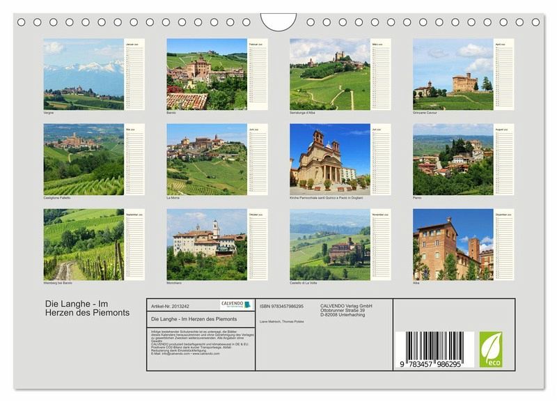 QUALITÄT - Hochwertiger Fotokalender mit 12 wunderschönen Motiven auf lichtbeständigem Bilderdruckpapier, robuste Spiralbindung mit Aufhängebügel.NACHHALTIG - deutliche Abfallreduzierung durch bedarfsgerechte Einzelstückfertigung, umweltfreundliches FSC-zertifiziertes Papier, Produktion in Deutschland, klimabewusste Logistik.PERFEKTES GESCHENK - Kalender für Freunde und Familie, für Kinder und Erwachsene, jung und alt, zu Weihnachten, Geburtstag oder zwischendurch.VIELFALT - Bildkalender in verschiedenen Formaten, z.B. DIN A5, DINA4, DIN A3 sowie DIN A2. Ob Naturmotiv, Gemälde oder Fotos, ideal für ein persönliches Wohlfühlambiente.Die Langhe - Eine verzaubernde Landschaft im Piemont. von Autor(in): Thomas Polske