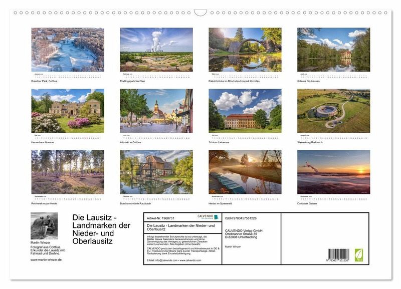 QUALITÄT - Hochwertiger Fotokalender mit 12 wunderschönen Motiven auf lichtbeständigem Bilderdruckpapier, robuste Spiralbindung mit Aufhängebügel.NACHHALTIG - deutliche Abfallreduzierung durch bedarfsgerechte Einzelstückfertigung, umweltfreundliches FSC-zertifiziertes Papier, Produktion in Deutschland, klimabewusste Logistik.PERFEKTES GESCHENK - Kalender für Freunde und Familie, für Kinder und Erwachsene, jung und alt, zu Weihnachten, Geburtstag oder zwischendurch.VIELFALT - Bildkalender in verschiedenen Formaten, z.B. DIN A5, DIN A4, DIN A3 sowie DIN A2. Ob Naturmotiv, Gemälde oder Fotos, ideal für ein persönliches Wohlfühlambiente.Bekannte Landmarken aus dem Gebiet der Lausitz. von Autor(in): Martin Winzer