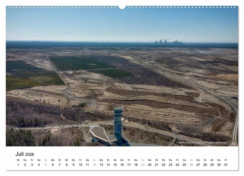 Juli: Aussichtsturm zum Schweren Berg in Weißwasser und Kraftwerk Boxberg