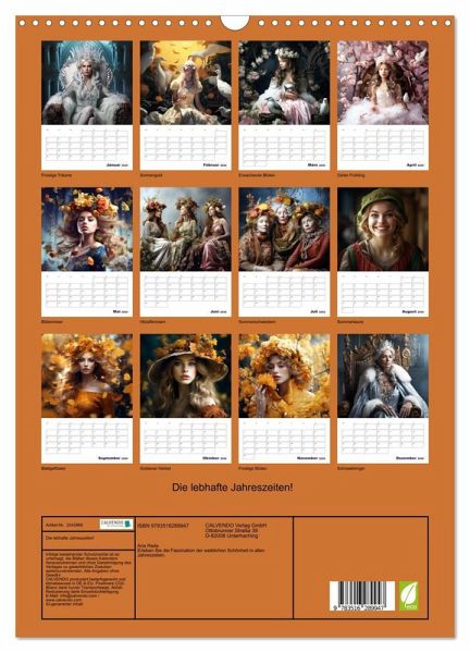 Erleben Sie die Faszination der weiblichen Schönheit in allen Jahreszeiten mit unserem Wandkalender "Die lebhafte Jahreszeiten". Jeder Monat fängt die einzigartige Essenz der Frau in harmonischer Symbiose mit den Jahreszeiten ein. Ein visuelles Fest, das Ihren Raum das ganze Jahr über mit Anmut und Eleganz erfüllt. Tauchen Sie ein in die zeitlose Schönheit der Frau in jedem Wetter.