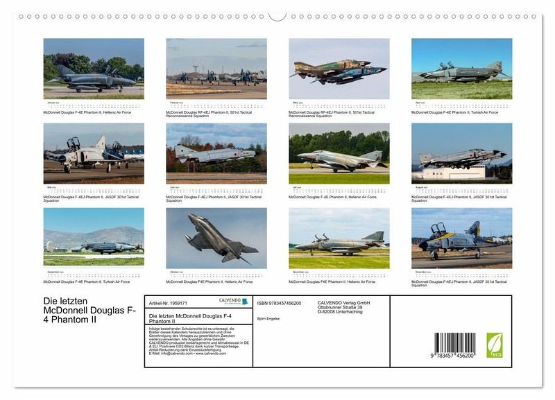 PREMIUM-LINIE - Brillanter Fotokalender mit 12 wunderschönen Motiven, Kunstdruck in Hochglanz in Museumsqualität.QUALITÄT - edle Materialien, stabile Rückwand mit 2 innovativen Einstecktaschen für eine optimale Präsentation an der Wand.NACHHALTIG - deutliche Abfallreduzierung durch bedarfsgerechte Einzelstückfertigung, umweltfreundliches FSC-zertifiziertes Papier, Produktion in Deutschland, klimabewusste Logistik.PERFEKTES GESCHENK - Kalender für Freunde und Familie, für Kinder und Erwachsene, jung und alt, zu Weihnachten, Geburtstag oder zwischendurch.Die letzten aktiven McDonnell Douglas F-4 Phantoms, Ende einer Ära von Autor(in): Björn Engelke