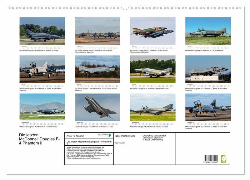 QUALITÄT - Hochwertiger Fotokalender mit 12 wunderschönen Motiven auf lichtbeständigem Bilderdruckpapier, robuste Spiralbindung mit Aufhängebügel.NACHHALTIG - deutliche Abfallreduzierung durch bedarfsgerechte Einzelstückfertigung, umweltfreundliches FSC-zertifiziertes Papier, Produktion in Deutschland, klimabewusste Logistik.PERFEKTES GESCHENK - Kalender für Freunde und Familie, für Kinder und Erwachsene, jung und alt, zu Weihnachten, Geburtstag oder zwischendurch.VIELFALT - Bildkalender in verschiedenen Formaten, z.B. DIN A5, DIN A4, DIN A3 sowie DIN A2. Ob Naturmotiv, Gemälde oder Fotos, ideal für ein persönliches Wohlfühlambiente.Die letzten aktiven McDonnell Douglas F-4 Phantoms, Ende einer Ära von Autor(in): Björn Engelke