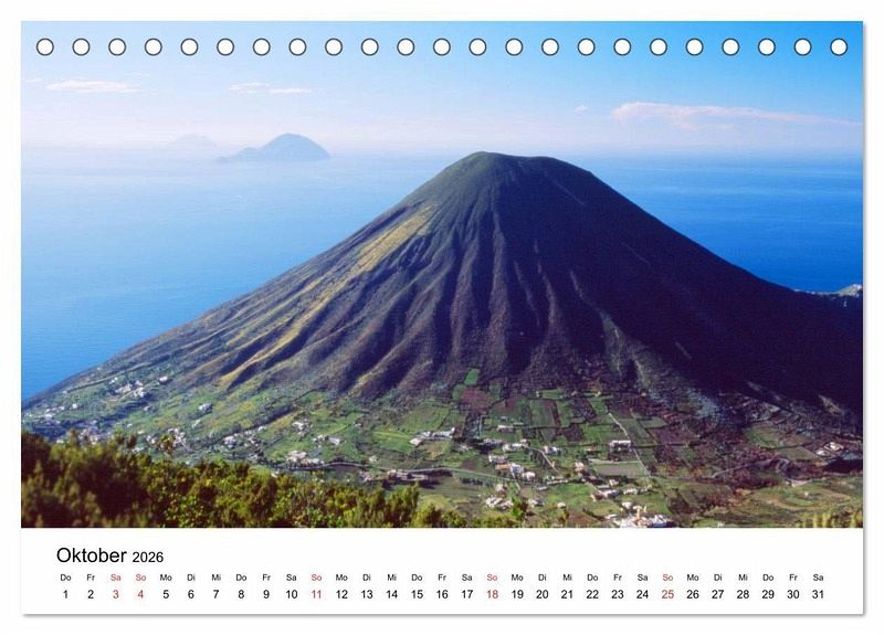 Oktober: Kegel des erloschenen Vulkans Monte di Porri auf Salina, im Hintergrund Filicudi und Alicudi