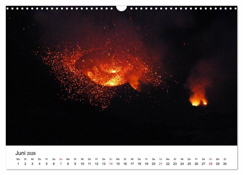Juni: Nächtlicher Blick in den feurigen Krater des Stromboli