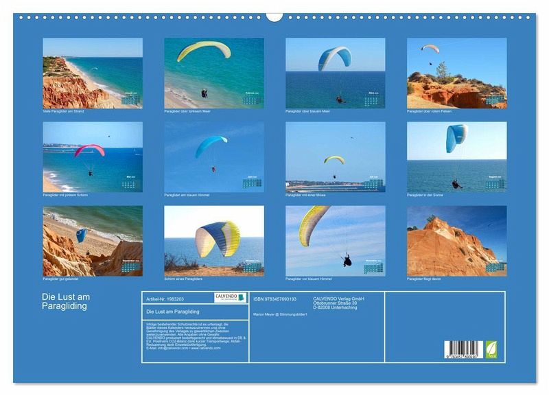 QUALITÄT - Hochwertiger Fotokalender mit 12 wunderschönen Motiven auf lichtbeständigem Bilderdruckpapier, robuste Spiralbindung mit Aufhängebügel.NACHHALTIG - deutliche Abfallreduzierung durch bedarfsgerechte Einzelstückfertigung, umweltfreundliches FSC-zertifiziertes Papier, Produktion in Deutschland, klimabewusste Logistik.PERFEKTES GESCHENK - Kalender für Freunde und Familie, für Kinder und Erwachsene, jung und alt, zu Weihnachten, Geburtstag oder zwischendurch.VIELFALT - Bildkalender in verschiedenen Formaten, z.B. DIN A5, DIN A4, DIN A3 sowie DIN A2. Ob Naturmotiv, Gemälde oder Fotos, ideal für ein persönliches Wohlfühlambiente.Dei Freiheit genießt man beim Paragliding von Autor(in): Stimmungsbilder1