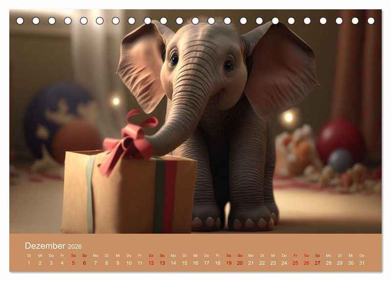 Mit diesem Elefanten-Kalender wird das kommende Jahr garantiert ein Jahr voller Freude und Spaß. Jeder Monat präsentiert eine neue KI-Illustration, die einen Elefanten in einer lustigen Szene zeigt und so für gute Laune sorgt. Ob als Geschenk für Freunde, Familie oder sich selbst - dieser Kalender ist das perfekte Accessoire für jedes Zuhause oder Büro. Holen Sie sich jetzt den Elefanten-Kalender und starten Sie mit einem Lächeln ins neue Jahr!