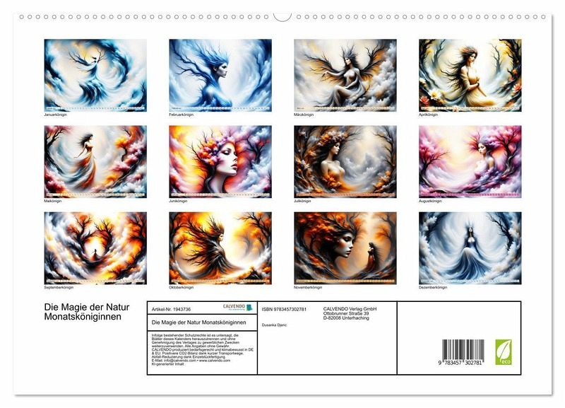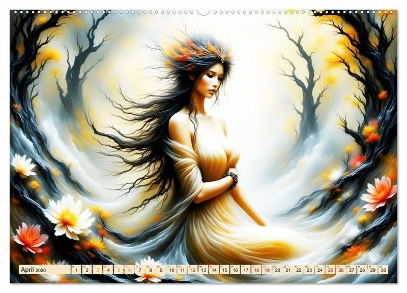 Erleben Sie die atemberaubende Symbiose von Mensch und Natur mit unserem einzigartigen Kalender. In jedem Monat offenbart sich das beeindruckende Bild einer schönen Frau, die sich elegant aus der Natur erhebt, als wäre sie ein Teil von ihr. Mit filigranen Ästen und zarten Blumen wird sie zu einem lebendigen Abbild der jeweiligen Jahreszeit, geschaffen von Künstlichen Intelligenz. Diese Kunstwerke fangen die Schönheit und Harmonie der Natur in ihrer reinsten Form ein und inspirieren mit ihrer faszinierenden Ästhetik.