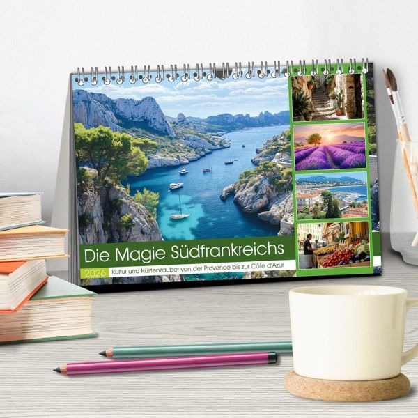 QUALITÄT - Hochwertiger Fotokalender mit 12 wunderschönen Motiven auf lichtbeständigem Bilderdruckpapier, robuste Spiralbindung.NACHHALTIG - deutliche Abfallreduzierung durch bedarfsgerechte Einzelstückfertigung, umweltfreundliches FSC-zertifiziertes Papier, Produktion in Deutschland, klimabewusste Logistik.PERFEKTES GESCHENK - Kalender für Freunde und Familie, für Kinder und Erwachsene, jung und alt, zu Weihnachten, Geburtstag oder zwischendurch.VIELFALT - Bildkalender in verschiedenen Formaten, z.B. DIN A5, DIN A4, DIN A3 sowie DIN A2. Ob Naturmotiv, Gemälde oder Fotos, ideal für ein persönliches Wohlfühlambiente.Von den leuchtenden Lavendelfeldern der Provence über die malerischen Dörfer der Dordogne bis hin zu den glamourösen Stränden der Côte d'Azur - Südfrankreich verzaubert mit seiner Vielfalt. von Autor(in): Steffen Gierok ; Magik Artist Design