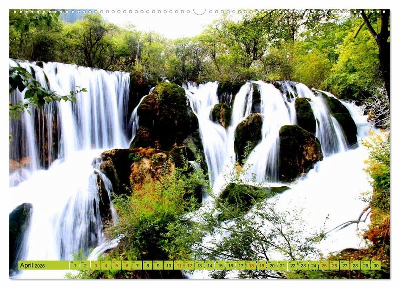 April: Jiuzhaigou Pearl Shoals Wasserfall