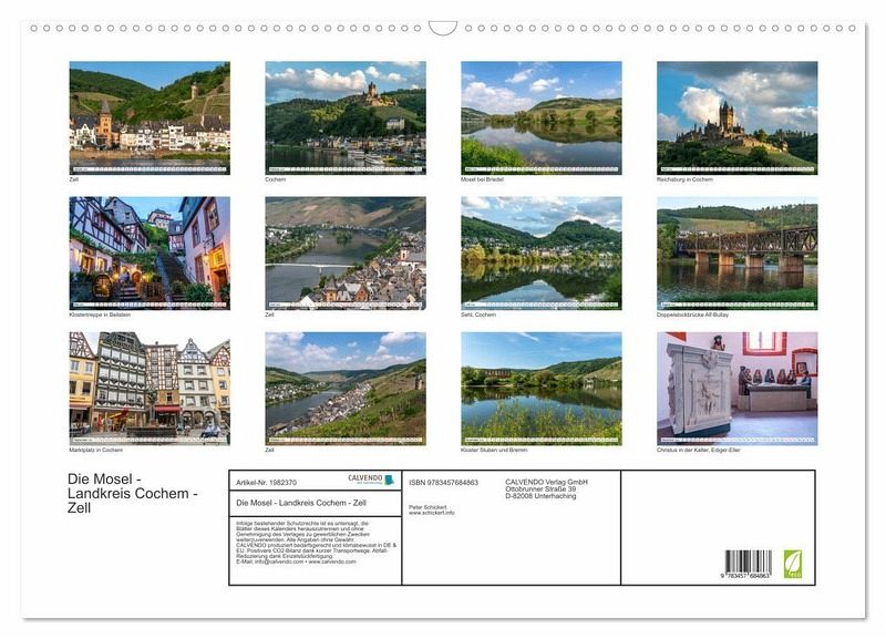 QUALITÄT - Hochwertiger Fotokalender mit 12 wunderschönen Motiven auf lichtbeständigem Bilderdruckpapier, robuste Spiralbindung mit Aufhängebügel.NACHHALTIG - deutliche Abfallreduzierung durch bedarfsgerechte Einzelstückfertigung, umweltfreundliches FSC-zertifiziertes Papier, Produktion in Deutschland, klimabewusste Logistik.PERFEKTES GESCHENK - Kalender für Freunde und Familie, für Kinder und Erwachsene, jung und alt, zu Weihnachten, Geburtstag oder zwischendurch.VIELFALT - Bildkalender in verschiedenen Formaten, z.B. DIN A5, DIN A4, DIN A3 sowie DIN A2. Ob Naturmotiv, Gemälde oder Fotos, ideal für ein persönliches Wohlfühlambiente.Der Mosel Landkreis Cochem-Zell in einem Kalender vom Reisefotografen Peter Schickert von Autor(in): Peter Schickert