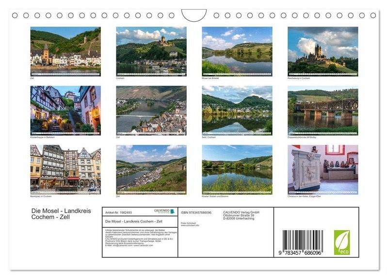 QUALITÄT - Hochwertiger Fotokalender mit 12 wunderschönen Motiven auf lichtbeständigem Bilderdruckpapier, robuste Spiralbindung mit Aufhängebügel.NACHHALTIG - deutliche Abfallreduzierung durch bedarfsgerechte Einzelstückfertigung, umweltfreundliches FSC-zertifiziertes Papier, Produktion in Deutschland, klimabewusste Logistik.PERFEKTES GESCHENK - Kalender für Freunde und Familie, für Kinder und Erwachsene, jung und alt, zu Weihnachten, Geburtstag oder zwischendurch.VIELFALT - Bildkalender in verschiedenen Formaten, z.B. DIN A5, DIN A4, DIN A3 sowie DIN A2. Ob Naturmotiv, Gemälde oder Fotos, ideal für ein persönliches Wohlfühlambiente.Der Mosel Landkreis Cochem-Zell in einem Kalender vom Reisefotografen Peter Schickert von Autor(in): Peter Schickert