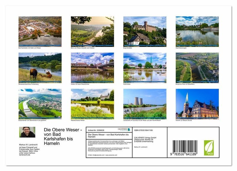 QUALITÄT - Hochwertiger Fotokalender mit 12 wunderschönen Motiven auf lichtbeständigem Bilderdruckpapier, robuste Spiralbindung mit Aufhängebügel.NACHHALTIG - deutliche Abfallreduzierung durch bedarfsgerechte Einzelstückfertigung, umweltfreundliches FSC-zertifiziertes Papier, Produktion in Deutschland, klimabewusste Logistik.PERFEKTES GESCHENK - Kalender für Freunde und Familie, für Kinder und Erwachsene, jung und alt, zu Weihnachten, Geburtstag oder zwischendurch.VIELFALT - Bildkalender in verschiedenen Formaten, z.B. DIN A5, DIN A4, DIN A3 sowie DIN A2. Ob Naturmotiv, Gemälde oder Fotos, ideal für ein persönliches Wohlfühlambiente.Entlang der Weser von der Barockstadt Bad Karlshafen bis zur Rattenfängerstadt Hameln von Autor(in): Markus W. Lambrecht