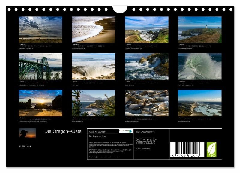 QUALITÄT - Hochwertiger Fotokalender mit 12 wunderschönen Motiven auf lichtbeständigem Bilderdruckpapier, robuste Spiralbindung mit Aufhängebügel.NACHHALTIG - deutliche Abfallreduzierung durch bedarfsgerechte Einzelstückfertigung, umweltfreundliches FSC-zertifiziertes Papier, Produktion in Deutschland, klimabewusste Logistik.PERFEKTES GESCHENK - Kalender für Freunde und Familie, für Kinder und Erwachsene, jung und alt, zu Weihnachten, Geburtstag oder zwischendurch.VIELFALT - Bildkalender in verschiedenen Formaten, z.B. DIN A5, DIN A4, DIN A3 sowie DIN A2. Ob Naturmotiv, Gemälde oder Fotos, ideal für ein persönliches Wohlfühlambiente.Fotos von der Oregon-Küste von Autor(in): Rolf Hitzbleck