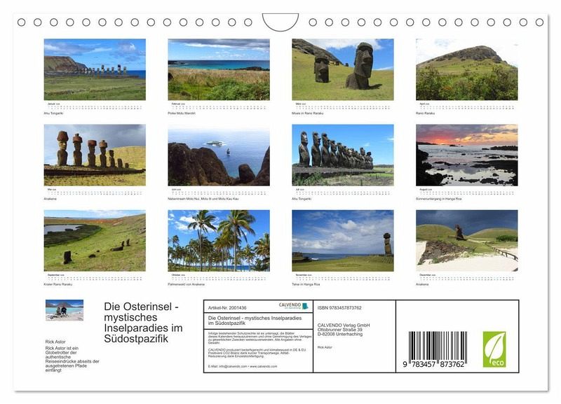 QUALITÄT - Hochwertiger Fotokalender mit 12 wunderschönen Motiven auf lichtbeständigem Bilderdruckpapier, robuste Spiralbindung mit Aufhängebügel.NACHHALTIG - deutliche Abfallreduzierung durch bedarfsgerechte Einzelstückfertigung, umweltfreundliches FSC-zertifiziertes Papier, Produktion in Deutschland, klimabewusste Logistik.PERFEKTES GESCHENK - Kalender für Freunde und Familie, für Kinder und Erwachsene, jung und alt, zu Weihnachten,Geburtstag oder zwischendurch.VIELFALT - Bildkalender in verschiedenen Formaten, z.B. DIN A5, DIN A4, DIN A3 sowie DIN A2. Ob Naturmotiv, Gemälde oder Fotos, ideal für ein persönliches Wohlfühlambiente.Die isolierteste Insel der Welt besticht nicht nur durch ihre geheimnisvollen Moai Steinskulpturen, sondern auch durch eine einzigartige Landschaft. von Autor(in): Rick Astor