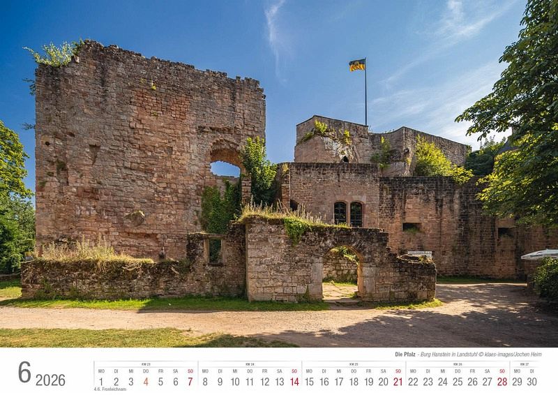 Der hochwertig verarbeitete Bildkalender Pfalz 2026 führt mit aktuellen, stimmungsvollen und repräsentativen Aufnahmen durch die Pfalz. 14 Seiten, Bilderdruck matt 170 g stabiler Graukarton aus 1 mm Buchbinderpappe als Rückwand vor dem Indexblatt. Format A3, ca. 42 x 30 cm quer, Spiralbindung.