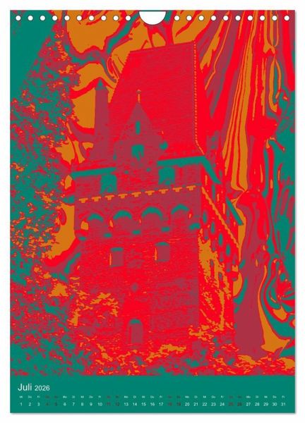 Falls es sich um ein spezifisches Kunstprojekt handelt, das farbige Türme oder Pop-Art-Elemente enthält, könnte ein solcher Kalender das Highlight dieser bunten Kunstwerke in verschiedenen Jahreszeiten oder Perspektiven zeigen.