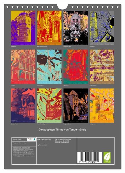 Die Türme in Tangermünde sind Teil einer Kunstinstallation oder eines Projekts, das mit Pop-Art-Elementen kombiniert wird. Tangermünde selbst ist eine historische Stadt in Sachsen-Anhalt, bekannt für ihre Altstadt und mittelalterliche Architektur, aber auch moderne Kunstprojekte haben dort Platz gefunden. Aber nur in meinem Kalender Falls es sich um ein spezifisches Kunstprojekt handelt, das farbige Türme oder Pop-Art-Elemente enthält, könnte ein solcher Kalender das Highlight dieser bunten Kunstwerke in verschiedenen Jahreszeiten oder Perspektiven zeigen.