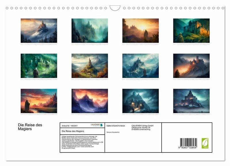 QUALITÄT - Hochwertiger Fotokalender mit 12 wunderschönen Motiven auf lichtbeständigem Bilderdruckpapier, robuste Spiralbindung mit Aufhängebügel.NACHHALTIG - deutliche Abfallreduzierung durch bedarfsgerechte Einzelstückfertigung, umweltfreundliches FSC-zertifiziertes Papier, Produktion in Deutschland, klimabewusste Logistik.PERFEKTES GESCHENK - Kalender für Freunde und Familie, für Kinder und Erwachsene, jung und alt, zu Weihnachten, Geburtstag oder zwischendurch.VIELFALT - Bildkalender in verschiedenen Formaten, z.B. DIN A5, DIN A4, DIN A3 sowie DIN A2. Ob Naturmotiv, Gemälde oder Fotos, ideal für ein persönliches Wohlfühlambiente.Fantasybilder zum Träumen von Autor(in): Simone Wunderlich