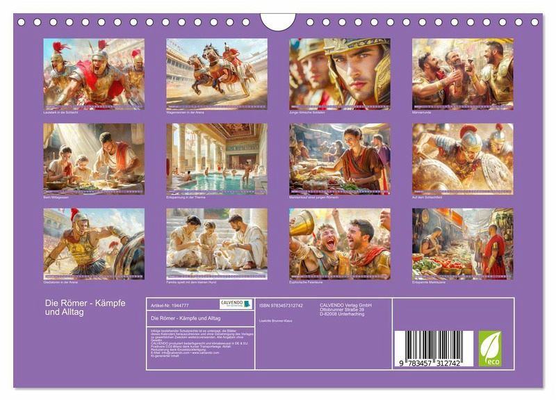 Blicke in die beeindruckende Welt der Römer, die ein gigantisches Reich erschufen, das bis heute fasziniert. Unsere KI-generierten Werke der Römerzeit entführen dich in eine Ära voller Leben und Abenteuer. Erlebe die Szenen des Alltags. Von einer musizierenden Familie, die die Klänge der Antike zum Leben erweckt, bis hin zu Klosterfrauen, die mit Hingabe in der Küche zaubern. Lass dich von den aufregenden Gladiatorenkämpfen in der Arena mitreißen und spüre den Adrenalinkick der Wagenrennen. Auch die lebhaften Marktszenen und die entspannenden Momente in der Badetherme zeigen die Vielfalt und…mehr