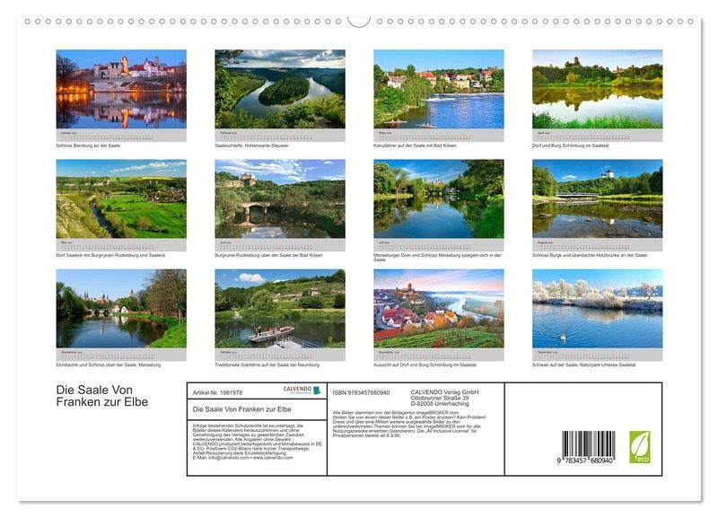PREMIUM-LINIE - Brillanter Fotokalender mit 12 wunderschönen Motiven, Kunstdruck in Hochglanz in Museumsqualität.QUALITÄT - edle Materialien, stabile Rückwand mit 2 innovativen Einstecktaschen für eine optimale Präsentation an der Wand.NACHHALTIG - deutliche Abfallreduzierung durch bedarfsgerechte Einzelstückfertigung, umweltfreundliches FSC-zertifiziertes Papier, Produktion in Deutschland, klimabewusste Logistik.PERFEKTES GESCHENK - Kalender für Freunde und Familie, für Kinder und Erwachsene, jung und alt, zu Weihnachten, Geburtstag oder zwischendurch.Schöne Impressionen eines mitteldeutschen Flusses von Autor(in): CALVENDO Verlag